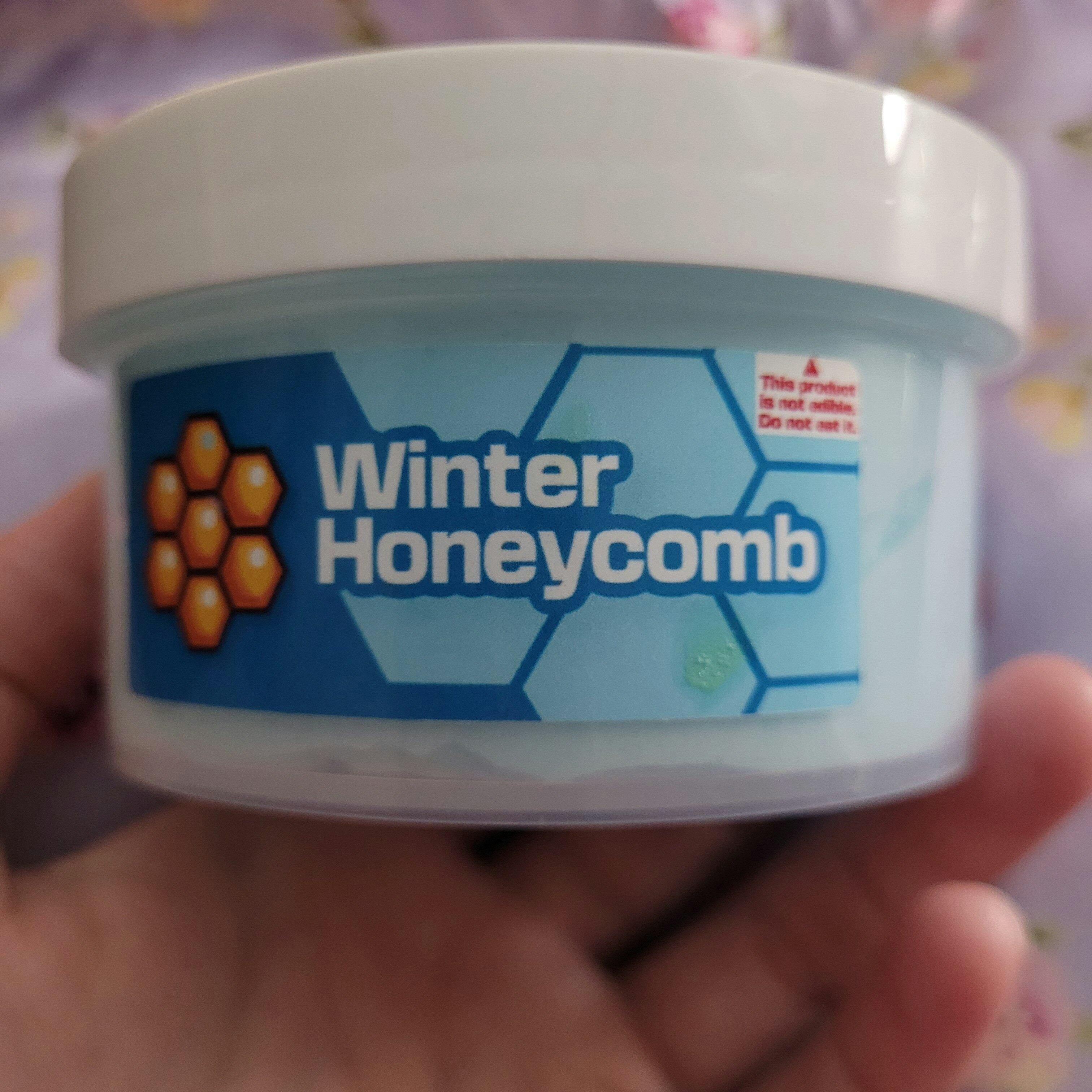 Winter Honeycomb is a DIY Clay slime that comes with 7 ounces of blue clear slime, a honeycomb clay and winter sprinkles. Also comes with an amazing SPEARMINT EUCALYPTUS SCENT 🤤